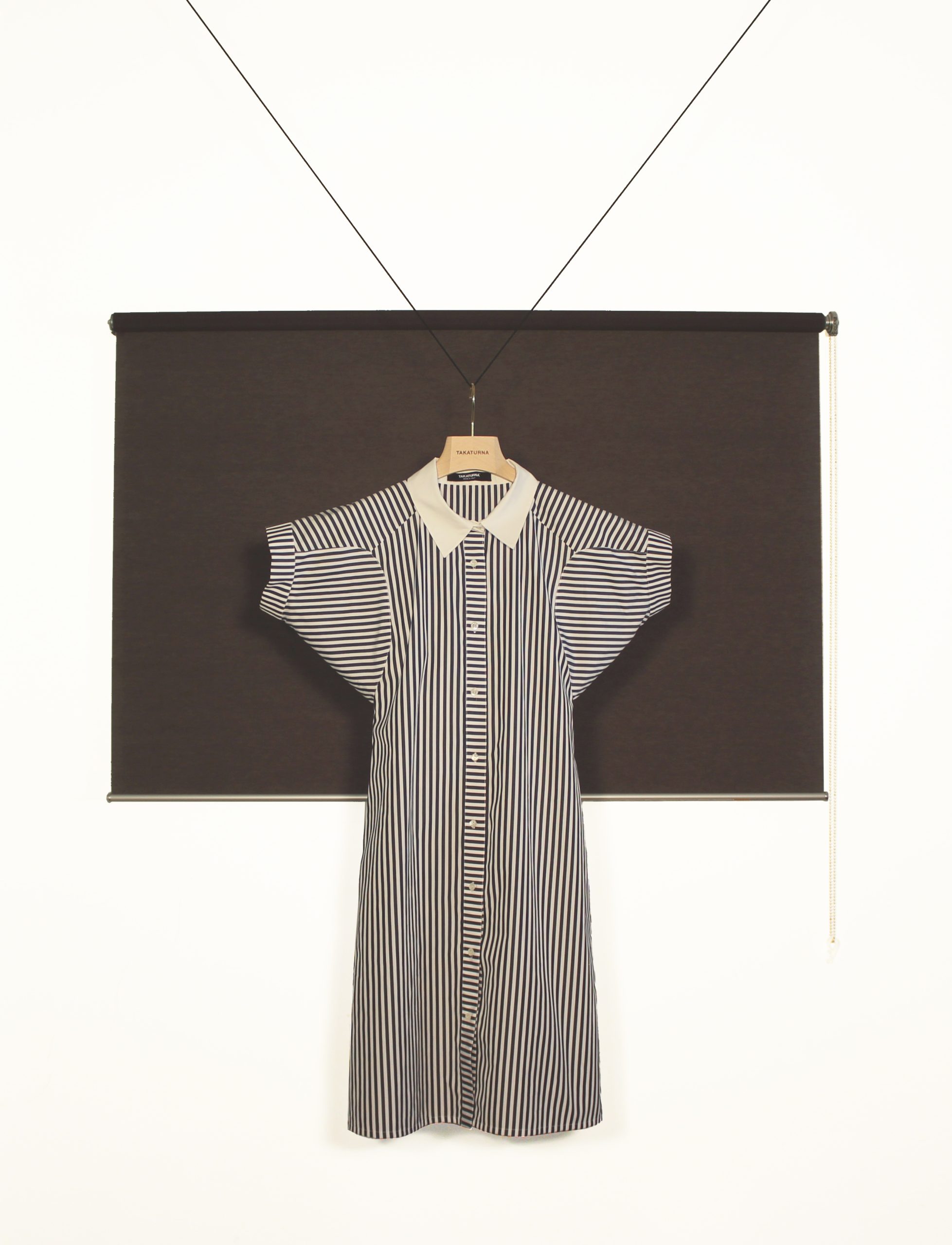 Abito – camicia a righe in Cotone. Colletto a contrasto bianco. Apertura frontale con bottoncini. Esclusivo Taglio Cinetico e manica corta.